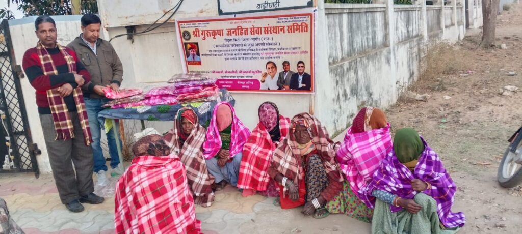 कड़ाके की सर्दी से जूझ रहे असहाय व जरूरतमंद लोगों के लिए सेवा और संवेदना की मिसाल पेश करते हुए श्री गुरुकृपा जनहित सेवा संस्थान की ओर से भामाशाह नरसी कुलरिया के सहयोग से व्यापक कंबल वितरण अभियान चलाया गया। इस सेवा कार्य ने ठिठुरती रातों में जरूरतमंदों को सिर्फ कंबल ही नहीं, बल्कि इंसानियत की गर्माहट भी दी।