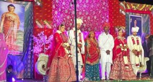 फुलेरा(दामोदर कुमावत) कस्बे के निकट सामलपुरा गांव में गुरुवार को धीया परिवार में दो बेटियों का विवाह बिना किसी दहेज व मात्र एक रुपये के नेग से शादी सम्पन्न हुई।सामलपुरा के बंशीलाल धीया की पुत्रियों एवं हजारी लाल धीया की भतीजियों शोभा का सांभर निवासी स्व.मोहन लाल भाटी तथा त्रिलोक चन्द भाटी के भतीजे नरेन्द्र के साथ और ममता का सांभर निवासी बंशीलाल चौहान के पुत्र शंकर लाल के साथ विवाह सम्पन्न हुआ।