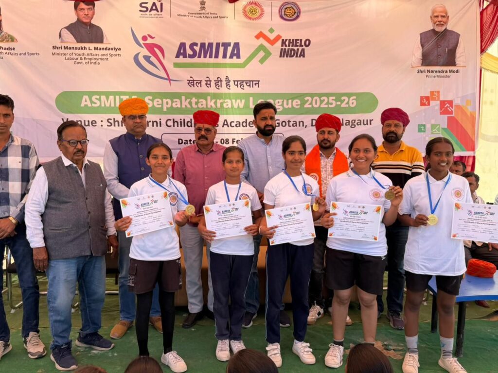 औद्योगिक नगरी गोटन ने एक बार फिर यह साबित कर दिया कि प्रतिभा केवल महानगरों की मोहताज नहीं होती। खेल मंत्रालय, भारत सरकार की पहल पर आयोजित ‘अस्मिता खेलो इंडिया सेपक टकरा लीग 2025-26’ का दो दिवसीय भव्य आयोजन 7 और 8 फरवरी को श्री करणी चिल्ड्रन एकेडमी उच्च माध्यमिक विद्यालय परिसर में संपन्न हुआ। प्रधानमंत्री नरेंद्र मोदी की खेलो इंडिया परिकल्पना के अनुरूप आयोजित इस लीग में बालिका खिलाड़ियों ने साहस, संतुलन और शानदार तालमेल का प्रदर्शन कर दर्शकों को रोमांचित कर दिया।