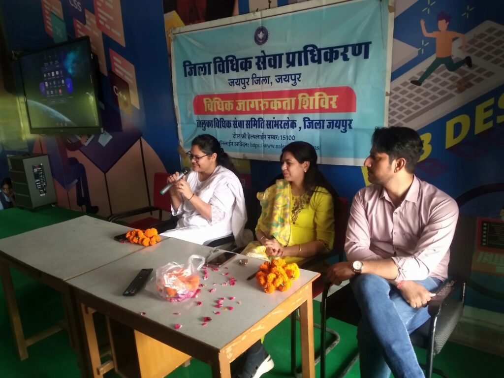 विघालय में अध्ययनरत छात्र छात्राओं को ऑन लाइन साईबर सुरक्षा तथा इससे संबंधित विषयों पर विधिक अधिकार, कर्तव्य एवं समसामयिक सामाजिक विधिक विषयों पर व्यावहारिक जानकारी प्रदान की गई। सचिव तालुका विधिक सेवा समिति, सांभर लेक रणजीत सिंह राठौड़ व लिगल एड असिस्टेंटचान्दमल सांभरिया ने पत्रकारों को जानकारी देते हुए बताया कि विघालयों में “कोर्ट वाली दीदी” के नाम से बाल अनुकूल शिकायत/ सुझाव पेंटी स्थापित की गई साथ ही विघालयों में एक जूनियर लीगल लिटरेसी क्लब का गठन किया गया जिसमें विधालय के प्रधानाचार्य, एक वरिष्ठ शिक्षक, दो छात्र प्रतिनिधि शामिल हैं।