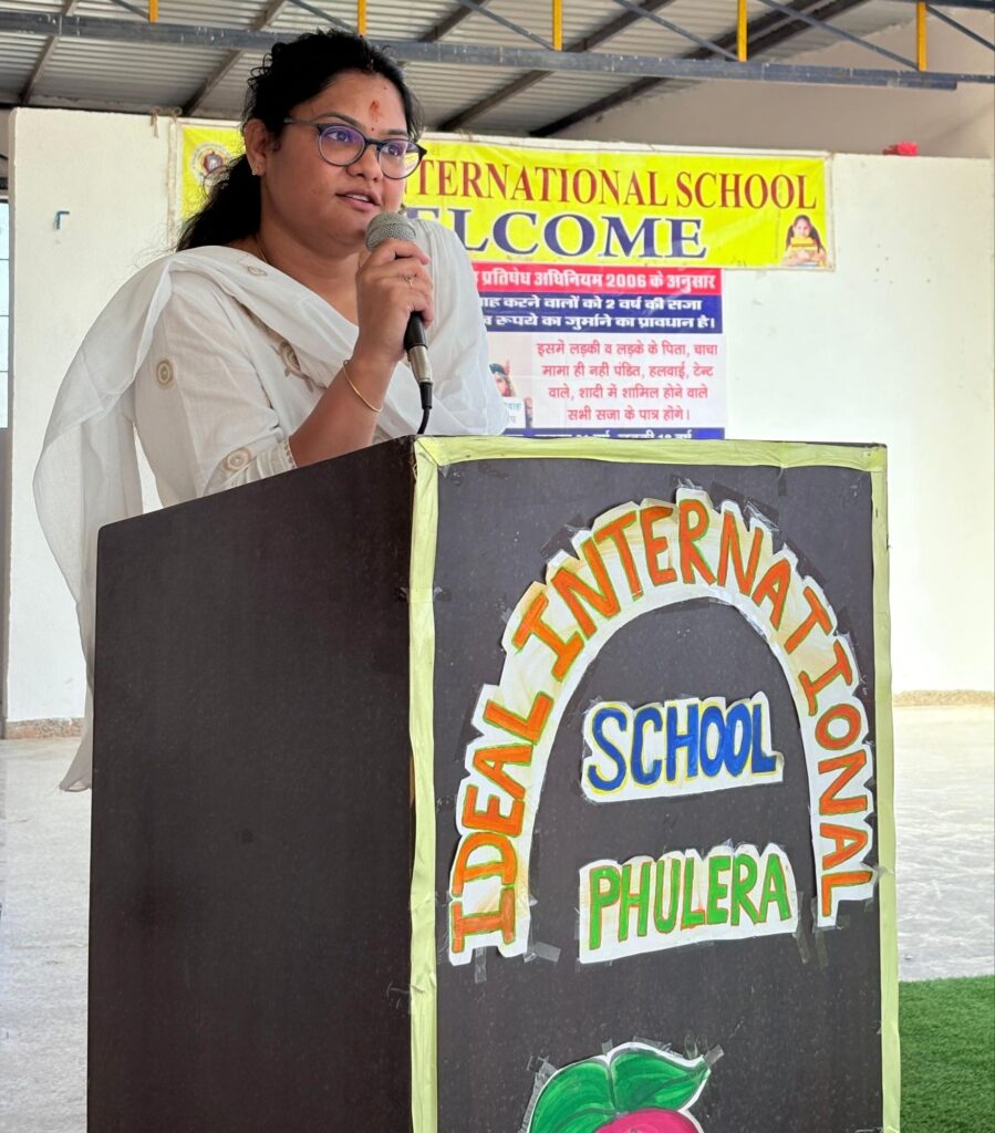 विद्यालय प्रिंसिपल नेहा शर्मा ने बाल विवाह के दुष्परिणामों पर जानकारी देते हुए कहा कि यह समाज एवं राष्ट्र की उन्नति में बाधा है। शिक्षा, कार्य कुशलता एवं आत्मनिर्भरता के अभाव में, शारीरिक एवं मानसिक रूप से कमजोर पीढ़ी का जन्म होता है। इस कार्यक्रम में पैरा लिगल वोलेंटियर शंकर लाल छंदवाल, विद्यालय स्टाफ आदि उपस्थित रहे।