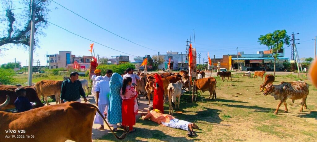 उन्होंने नगर एवं क्षेत्र के लिए शांति एवं विकास की कामना की इस अवसर पर शाम को सामूहिक प्रसादी का आयोजन भी किया गया जहां लोगों ने गौ दर्शन कर प्रसादी प्राप्त की।
