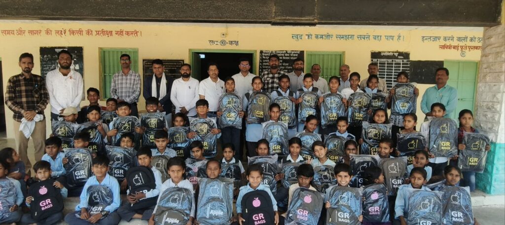 शिक्षकों द्वारा बच्चों को स्कूल बैग वितरण