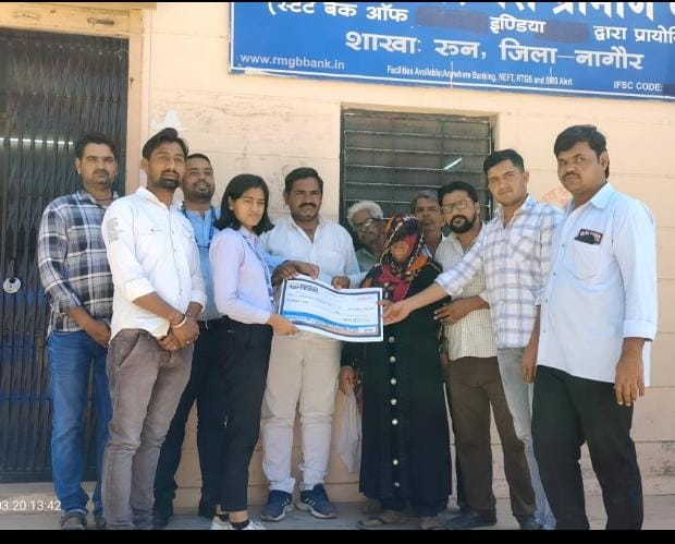 प्रधानमंत्री जीवन ज्योति बीमा के तहत सौंपा चैक