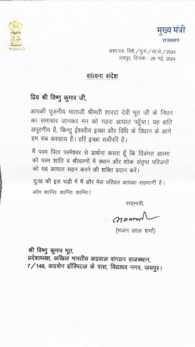 मुख्यमंत्री शर्मा, पूर्व मुख्यमंत्री सिंधिया व भाजपा प्रदेश अध्यक्ष जोशी सहित विभिन्न संगठनों ने भूत परिवार को सांत्वना संदेश भेजकर जताई संवेदना June 3, 2024 No Comments