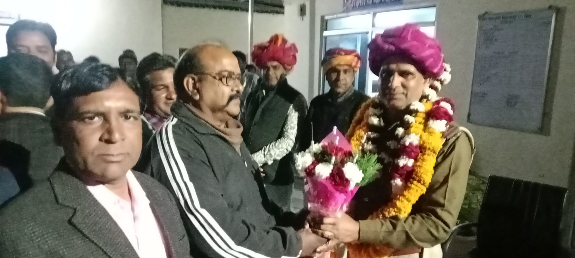 विदाई समारोह में भावुक हुए थाना प्रभारी बाबूलाल मीणा।