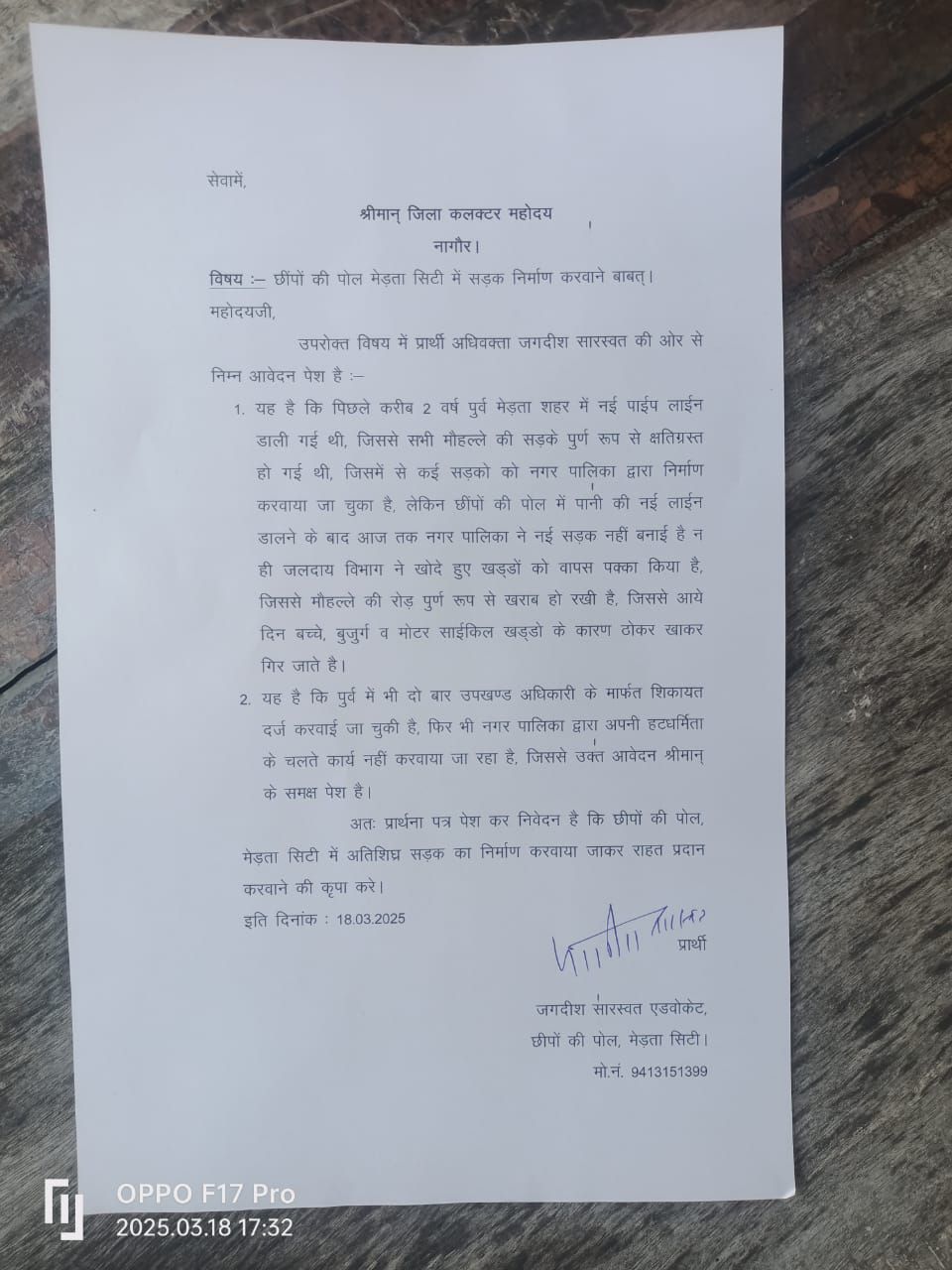 छींपों की पोल मेड़ता सिटी में सड़क निर्माण की मांगनागरिकों की परेशानी को दूर करने के लिए कलक्टर से की गई अपील March 19, 2025 No Comments