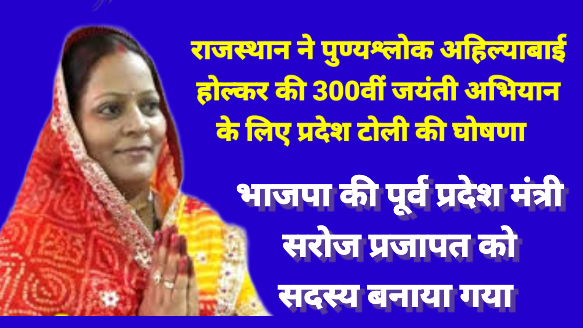 पुण्यश्लोक अहिल्याबाई होल्कर 300वीं जयंती अभियान: प्रदेश टोली की घोषणा , पूर्व प्रदेश मंत्री सरोज प्रजापत को सदस्य बनाया May 14, 2025 No Comments